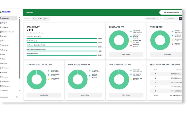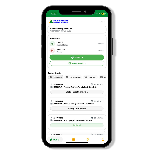 Hyundai Management Mobile System is an internal mobile application used for employee attendance and real-time recording of technician and QC team activities. Through this system, work processes become more efficient, transparent, and easy to monitor by management, as part of the implementation of a smart management system within the company.