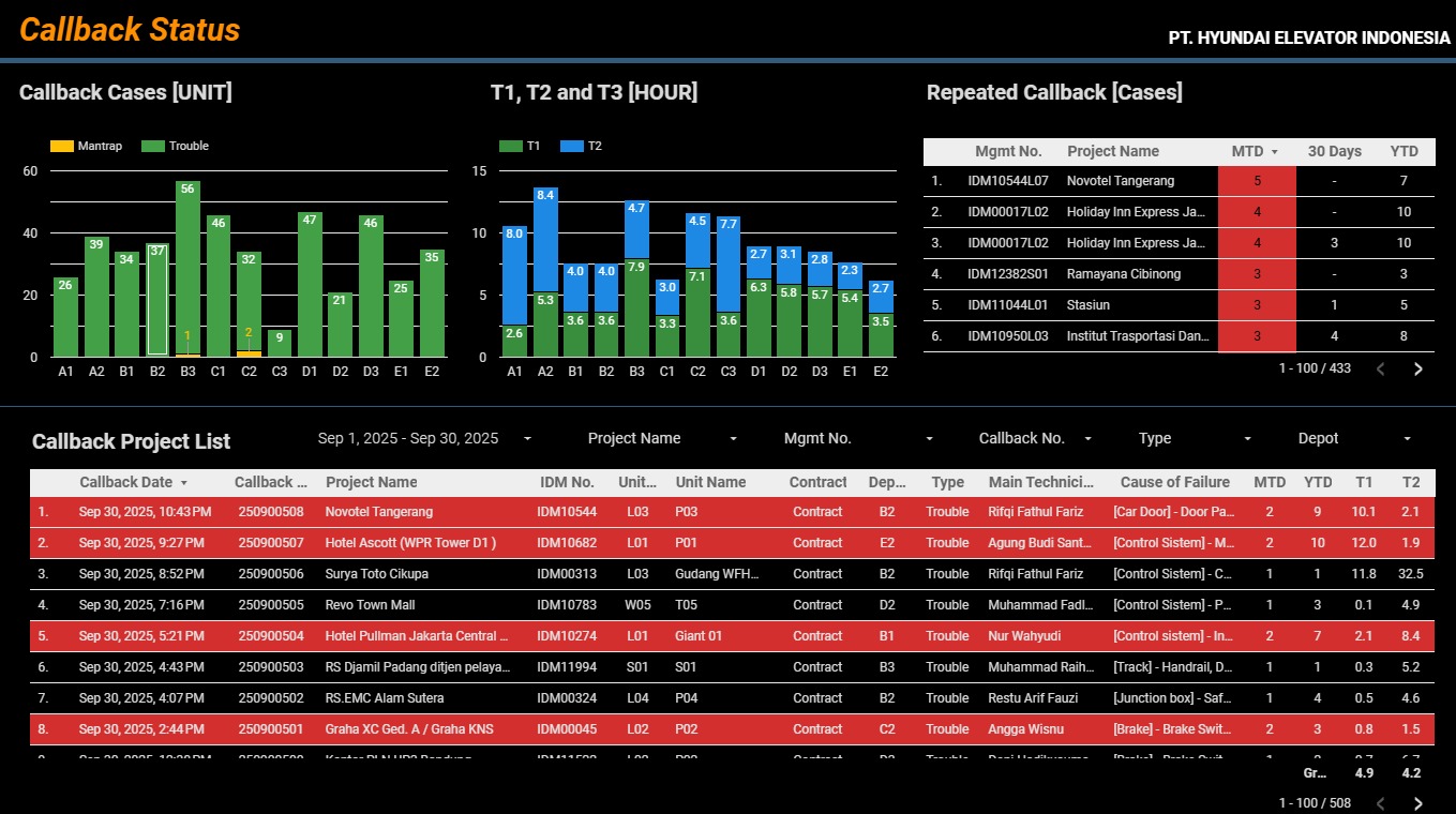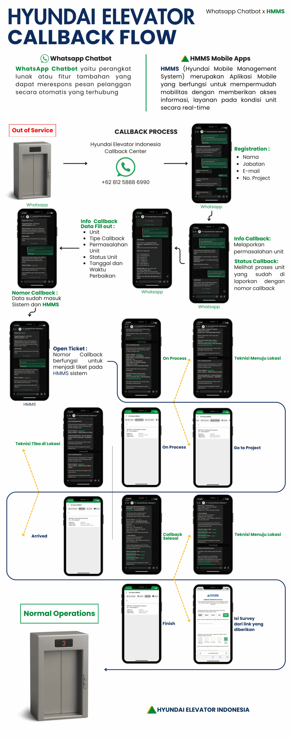 Slowly handled complaints can affect customer comfort. Now, Hyundai Elevator is equipped with a Real-Time Callback Monitoring Dashboard. This feature can accurately and quickly detect problems and prioritize the handling of complaints from its units. Our Callback Service is available 24 hours a day